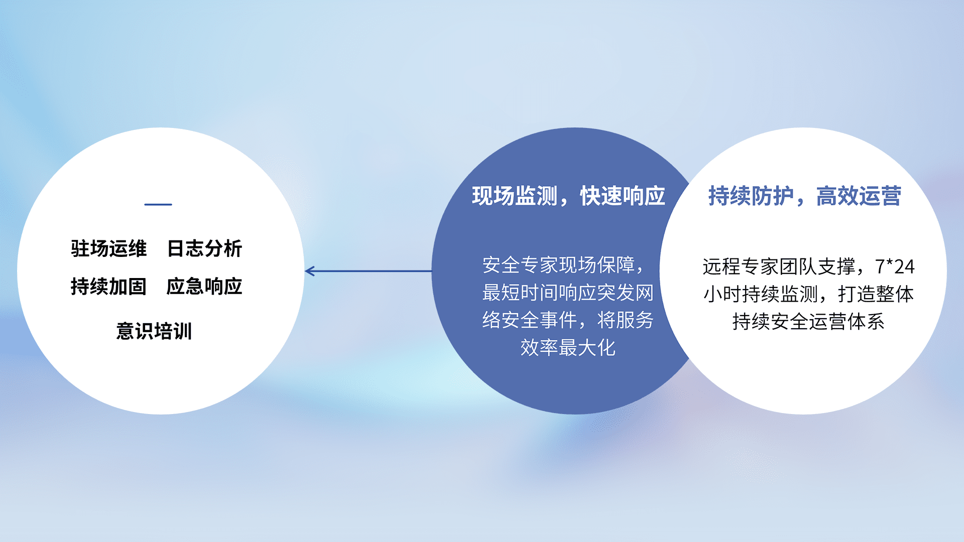7X24小时持续监测安全事件,保持安全策略有效性,降低资产脆弱性风险,,精准拦截黑客攻击,,,,减少被黑客利用的机会,,第一时间遏制,,,,降低损失。。。。